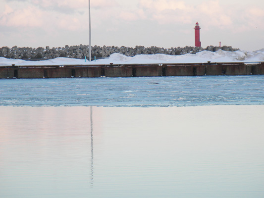 それでも、港まで出てみると、湾の中に氷が・・・・